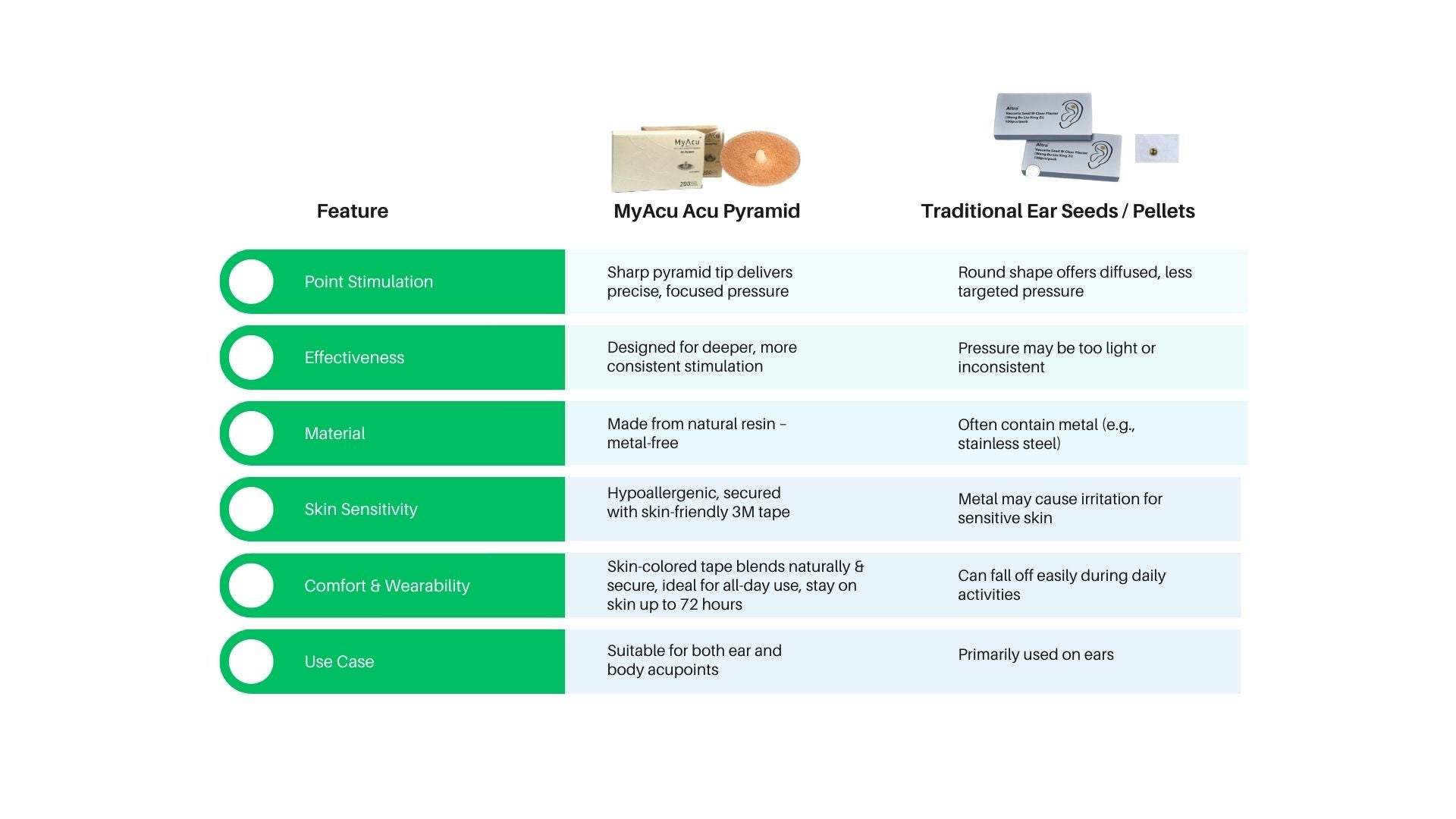 Comparison: MyAcu Acu Pyramid vs. Traditional Ear Seeds/Pellets