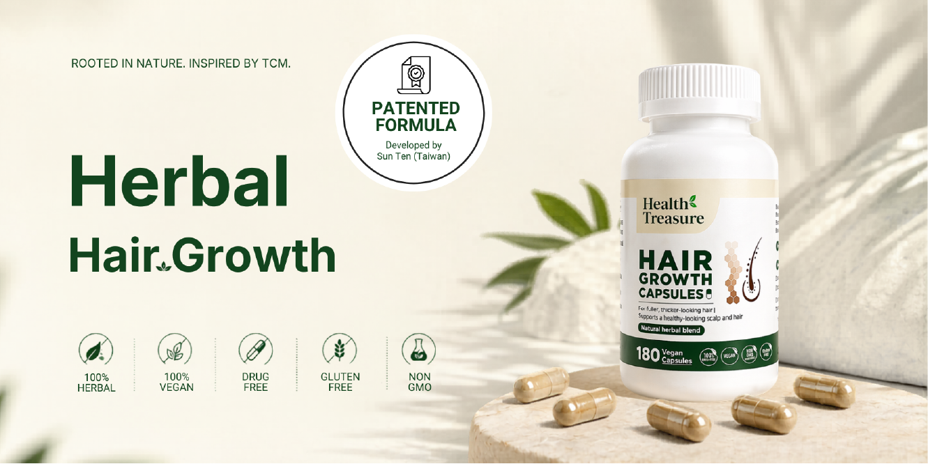 HairGrowth is a patented formula developed by Sun Ten (Taiwan) that harnesses the healing power of nature and the wisdom of Traditional Chinese Medicine to naturally stimulate, nourish, and revitalise hair growth.